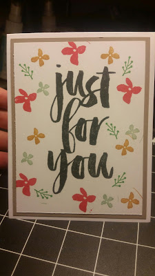 I love this stamp set it has this great saying Just for you and it also has a few other Sayings that you can add to the inside. I picked the 2015-2017 in colors as my colors. I made a card in each color.